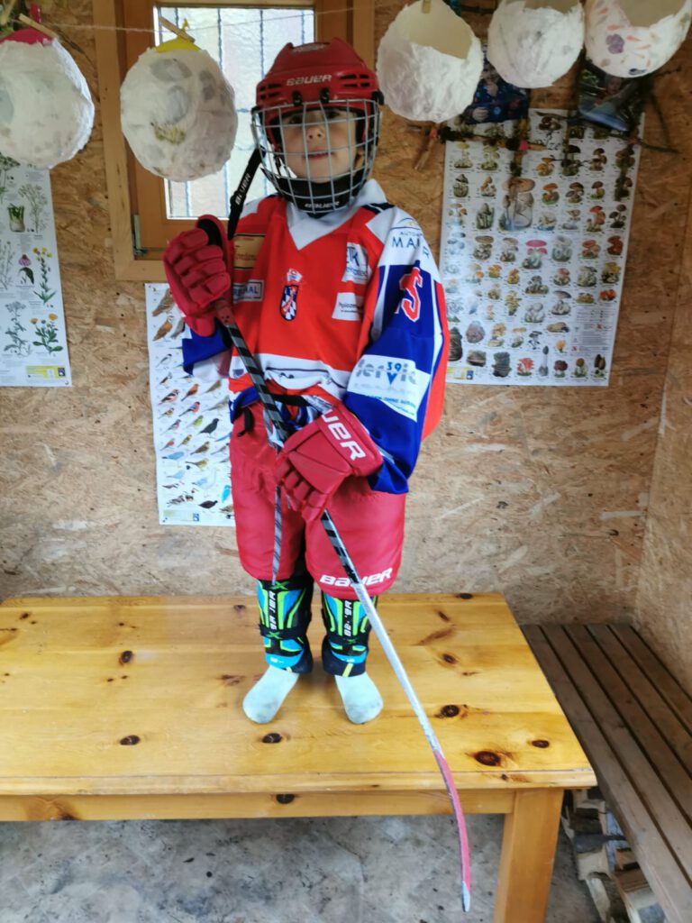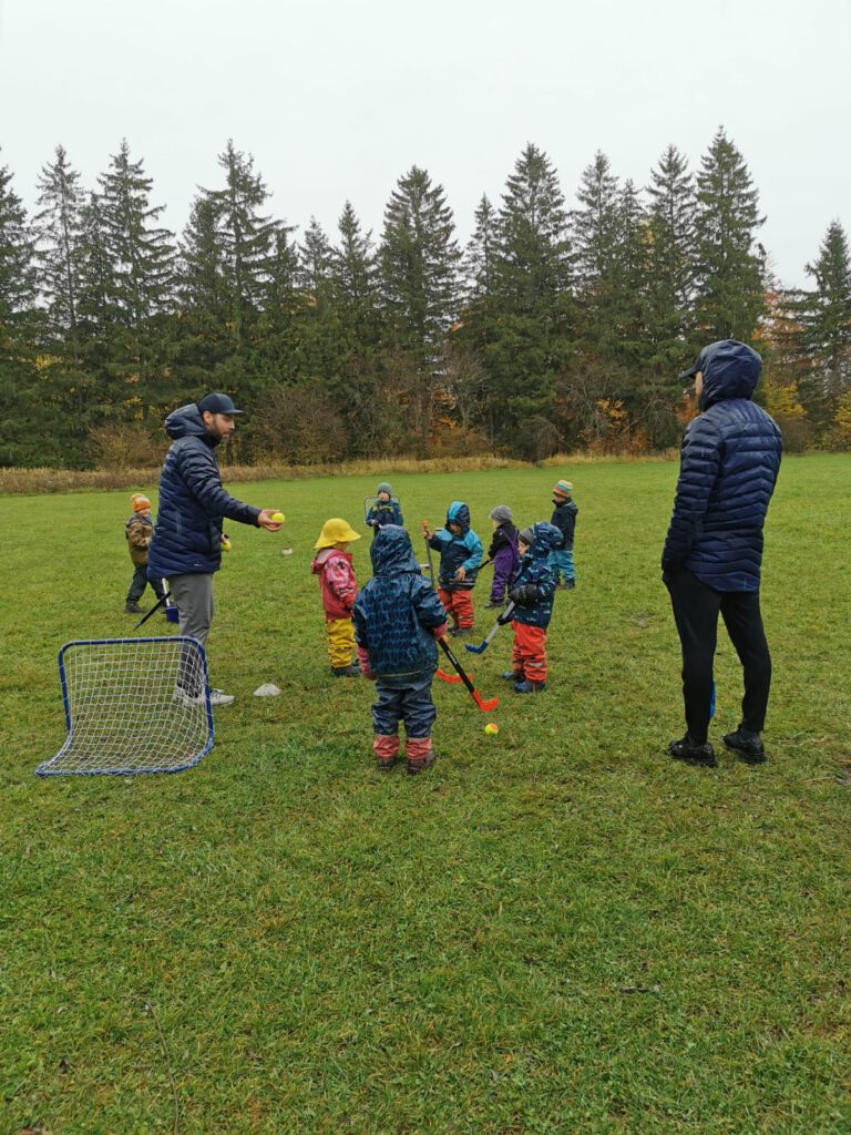 Im November 2025 besuchten drei Trainer des EC Peiting die Waldkindergartengruppe „die Wurzelzwerge“ in Peiting. Die Trainer stellten den Kindern die Sportart Eishockey vor und erzählten vom Kindertraining, das der ECP anbietet. Die Kinder durften danach selbst eine Eishockeyausrüstung anprobieren und wer Lust hatte konnte sein Geschick mit Schläger und Ball direkt auf der Wiese vor dem Bauwagen testen. Die Kinder hatten großen Spaß beim Ausprobieren und freuten sich am Ende über die Geschenketüte, die unter anderem einen Gutschein für einen vergünstigten Eintritt zu einem Spiel enthielt. Das wollen sich viele der Waldkindergartenkinder auf keinen Fall entgehen lassen.